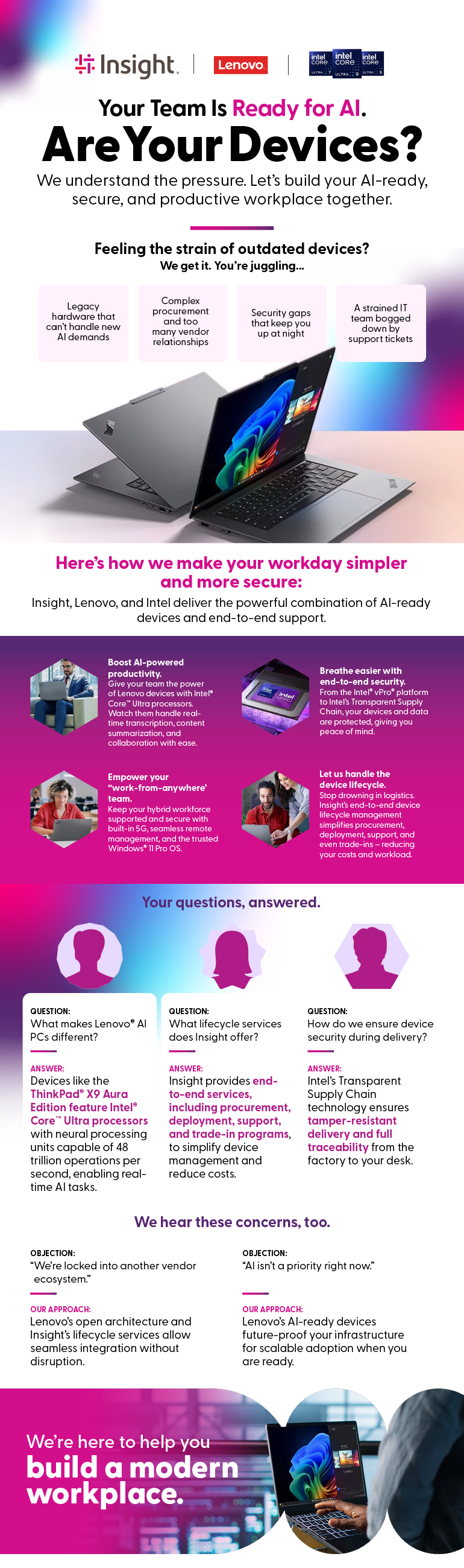 Insight, Lenovo, and Intel deliver the powerful combination of AI-ready devices and end-to-end support to make it happen.